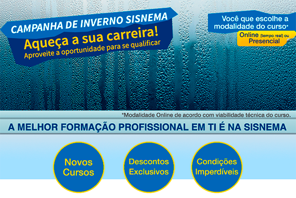 Aproveite a Campanha de Inverno da SISNEMA para adqurirr vários packs especiais com os melhores e mais atuais cursos de TI do mercado.